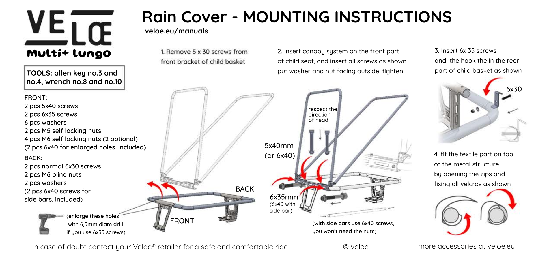 Materials: textile, plastic transparant windows, velcro and zippers. Bolts to install included.